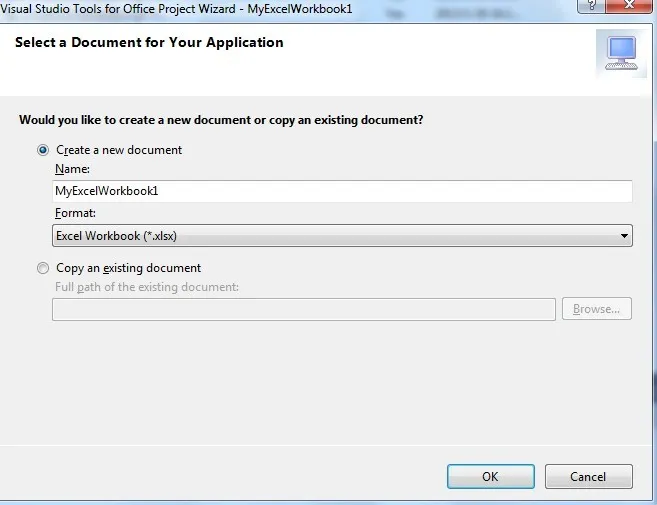 介绍完了创建Excel外接程序之后,下面看看如何创建一个文档级的项目: