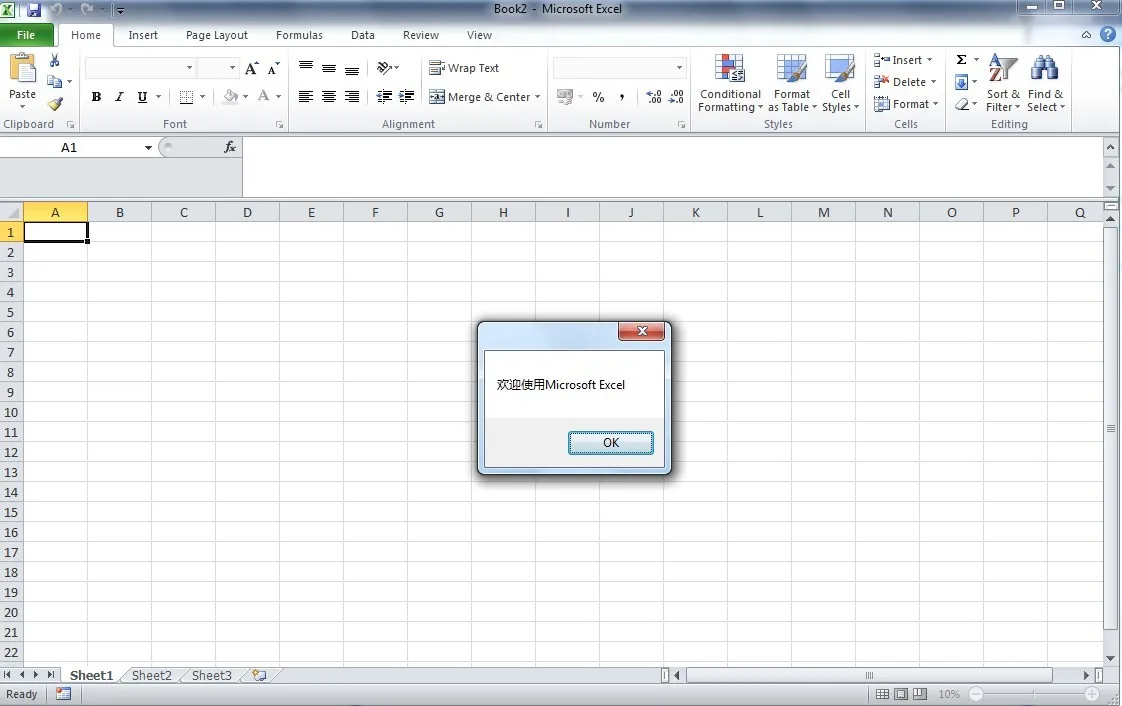 首先我们模拟一个需求,大多说软件在使用时都会弹出一个欢迎界面,这样我们就创建一个外接程序,每次打开Excel文件时弹出一个欢迎界面,退出时弹出“谢谢使用”界面。