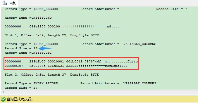 - 43757374 6f6d6572 4e616d65 31333533 聚集键的16进制值,即CustomerName列。