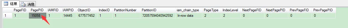 我这里的根页是15058,我们使用DBCC PAGE命令查看下这个根页(记得先执行 DBCC TRACEON(3604))。