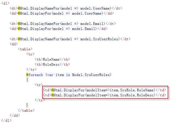 <dd>@Html.DisplayFor(model => model.UserName)</dd>