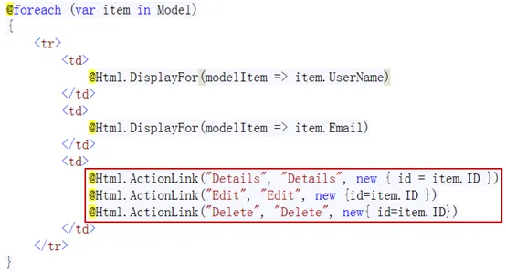 DisplayFor (model=>model.xxx)à 生成纯文本,显示xxx列的内容