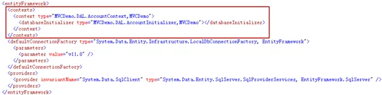 databaseInitializer 配置节中 , type 的值对应 (initializer class 的完整描述,程序集)