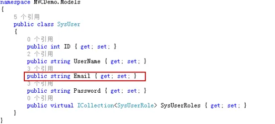 先做点小修改,在ModelsàSysUser.cs里面添加个Email字段。