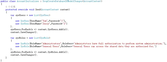 下面我们就新建类AccountInitializer.cs来完成这个工作。