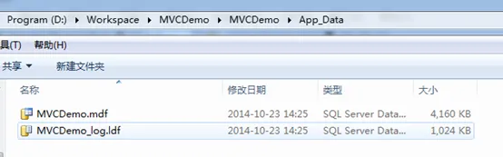 打开项目的App_Data 文件夹,发现数据库文件已经存在。