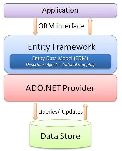 从上图可以看出,EF框架在底层是通过调用ADO.NET来实现数据库操作的。