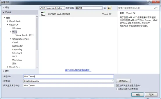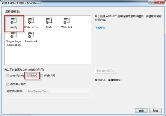 NOTE:模板要选Empty,如果直接选MVC会产生多余代码。