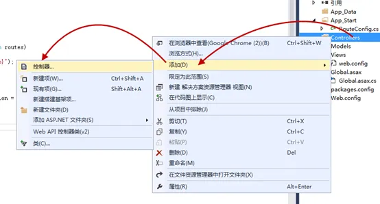 另外一种是通过Controller中的Action来添加。这次我们采用后一种方法。