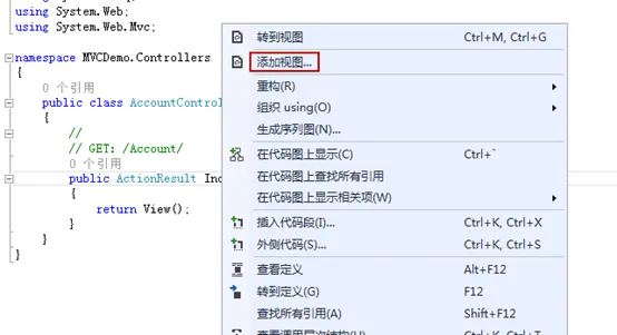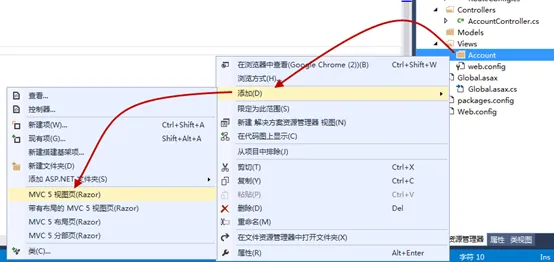 添加View有两种方法,一种是直接在Views文件夹下添加(右键ViewsàAccount文件夹)