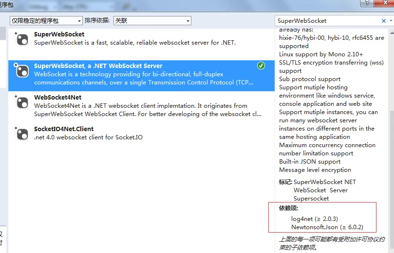 刚开始自己也试着写了个websocket的服务器,但是觉得麻烦,后来还是直接用SuperWebSocket了,因为它真的简单实用高大上。直接在NuGet包中就可以直接安装,