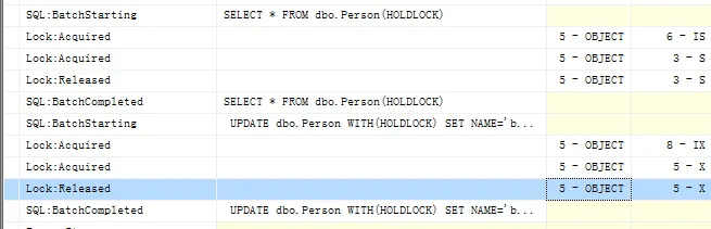 2 UPDATE dbo.Person WITH(HOLDLOCK) SET NAME='bbbbb' WHERE ID=4