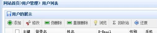 (1)我们对数据库的操作无非就是增删改查,那么我们现在开始实现对数据的删除,对数据的删除我们现在初步分为二种,一种是直接将数据删除,一种就是伪删除,只是修改用户的删除状态为删除,直接将数据删除又分为两种状态,一种状态时一条一条数据的删除,一种是直接选择很多数据然后删除,因为一条一条的删除很简单,我这里就不做了,我直接坐多条数据的删除,那么下面我们开始实现直接删除和伪删除的功能。