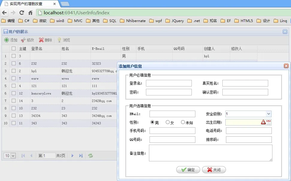 (1)当我们网站开发到这里的时候,我们虽然已经实现了用户登录信息,但是我如果不登录我还是能够操作数据库中的数据,只要我在路径中直接输入访问的地址,不经过登录信息,比如:http://localhost:6941/UserInfo/Index如果我这样访问的话,如图所示他是可以进行操作的,但是用户还没有登录啊,所以我们就需要解决这样的问题。