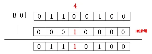 同样也很简单,要将当前4对应的bit位置1的话,只需要1左移4位与B[0] | 即可。