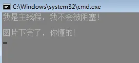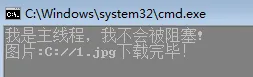 1 class Program 2 { 3 static void Main(string[] args) 4 { 5 WebClient client = new WebClient(); 6 7 client.DownloadFileCompleted += new System.ComponentModel.AsyncCompletedEventHandler(client_DownloadFileCompleted); 8 9 client.DownloadFileAsync(new Uri("http://imgsrc.baidu.com/baike/abpic/item/6a600c338744ebf844a0bc74d9f9d72a6159a7ac.jpg"), 10 "1.jpg", "图片下完了,你懂的!"); 11 12 Console.WriteLine("我是主线程,我不会被阻塞!"); 13 Console.Read(); 14 } 15 16 static void client_DownloadFileCompleted(object sender, System.ComponentModel.AsyncCompletedEventArgs e) 17 { 18 Console.WriteLine("\n" + e.UserState); 19 } 20 }