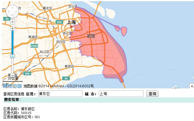 function byDistricty_CallBack(data){ showTime();document.getElementById("textUniqId").value = data.uniqid; var resultStr=""; if(data.status =="E0") { var lineNum = data.list.length; //返回总数. resultCount=lineNum; var content=""; for(var i=0;i){ content += ""; content +=""+"区县名称:"+data.list[i].name+"区县代码:"+data.list[i].adcode+""+"区县所属城市区号:"+data.list[i].citycode+""; content+="