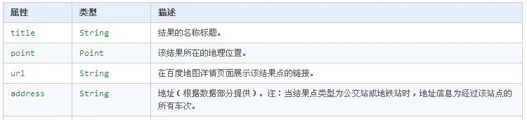第二个参数是回调函数,用来打印查询结果,和添加圆形覆盖物的。surroundingPoi会返回Array<LocalResultPoi>,LocalResultPoi的部分属性如下: