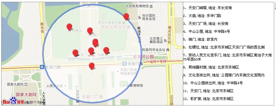 第一个参数是指定坐标点,这里我们指定的是天安门的坐标。