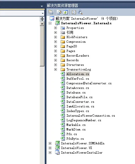 在解决方案里面,SSMS插件项目和UI项目可以直接忽略,如果你只想研究核心代码的话