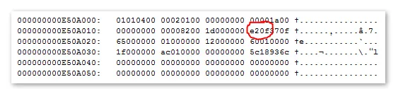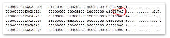 现在,4066这个十进制数换成十六进制是0x0FE2. 字节交换,变成0xE20F,现在我们知道,我们已经匹配到m_freeCnt的数据类型了