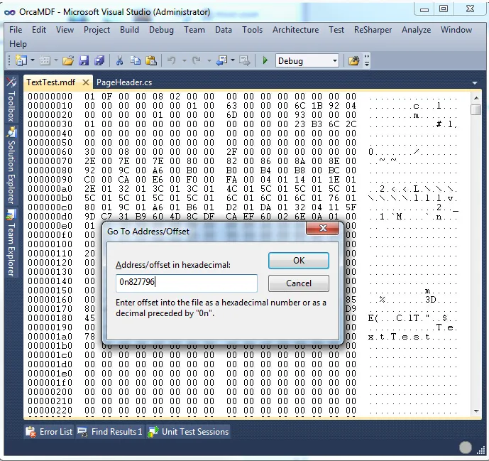 把mdf文件拖入VS,VS会打开hex编辑器,我们根据页面偏移算出页面位置