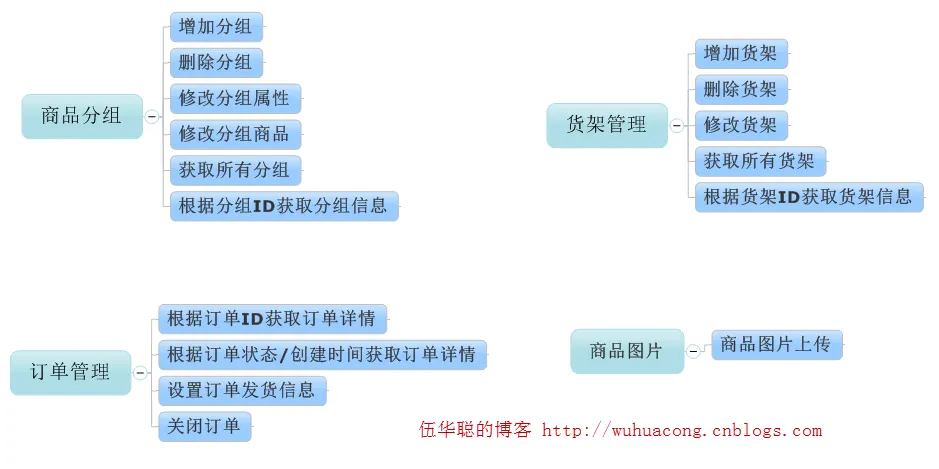 但是通过上面图示的接口功能图,我们可以整理出对应的微信小店的API接口和实现了。