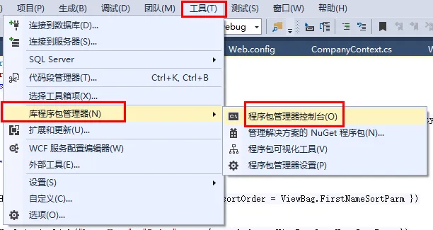 从上图中的地址栏中可以看到这个页面调用的是Company Controller下的Index Action.因此我们就先打开Controllers文件夹下的CompanyController.cs文件,写入如下代码: