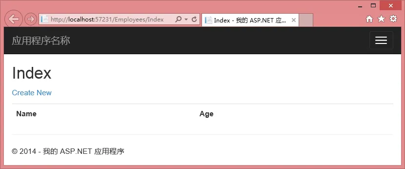 在解决方案资源管理器中右击Views文件夹下Employees文件夹下的Index.cshtml选择在浏览器中查看。得到如下结果。
