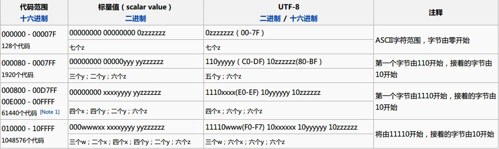 转换公式:1110xxxx(E0-EF) 10yyyyyy 10zzzzzz,显示标明的是标志位)。