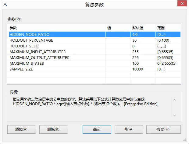 MAXIMUM_STATES:指定算法所支持变量取值状态的最大数目。如果属性状态数大于该值,算法会截取最常用的状态,并将超过最大值的其余状态视为遗漏。