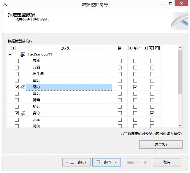 在Mining Models(挖掘模型)中,主要是列出所建立的挖掘模型,也可以新增挖掘模型,并调整变量,变量使用状况包含Ignore(忽略)、Input(输入变量)、Predict(预测变量、输入变量)以及Predict Only(预测变量),如图所示。