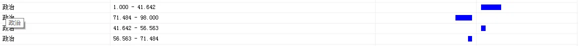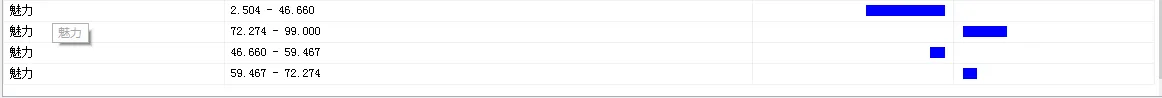“挖掘模型查看器”展示该挖掘模型的结果,通过通过柱状图表示某一变量的取值状态对预测变量影响的方向和大小。