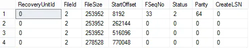 可以使用 DBCC LOGINFO 命令进一步观察 VLF 的相关属相。