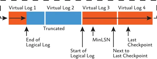 当日志持续增长时,会使用相同的方式确定新添加的 VLF 的数量。日志总是以整个 VLF 为单位增长,而且缩小也只能到 VLF 的边界为止。