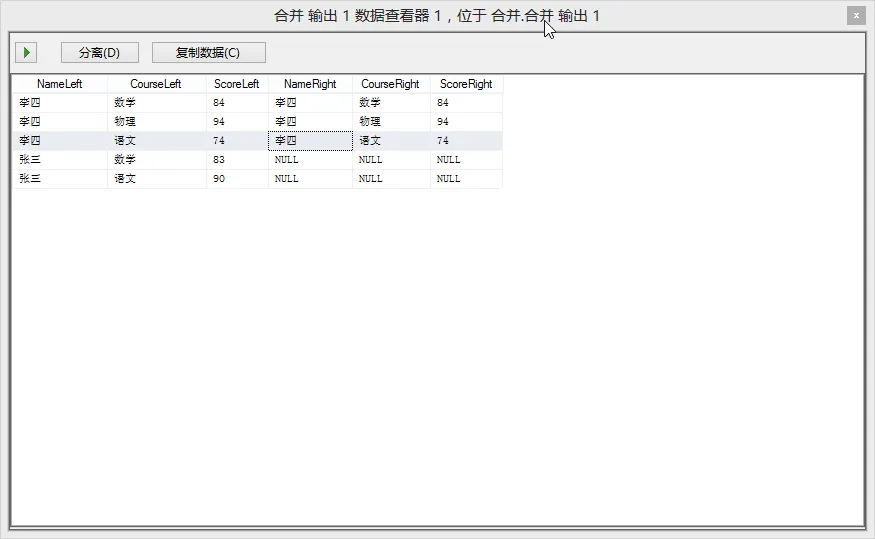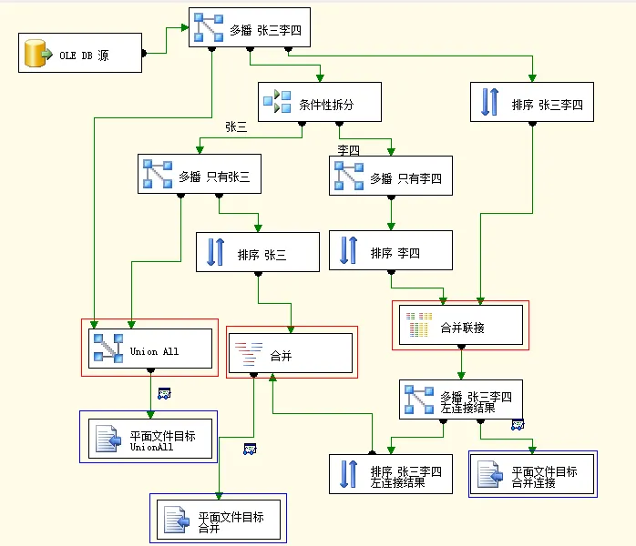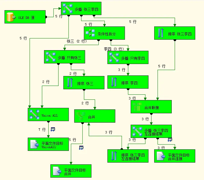 最后为组件【合并】,合并是【合并联接】后与【多播 只有张三】排序后的合并。
