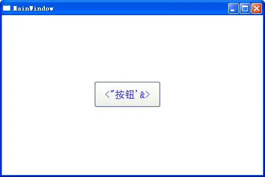 1 <Window x:Class="WpfApplication6.MainWindow" 2 xmlns="http://schemas.microsoft.com/winfx/2006/xaml/presentation" 3 xmlns:x="http://schemas.microsoft.com/winfx/2006/xaml" 4 Title="MainWindow" Height="350" Width="525"> 5 <Grid> 6 <Button Margin="183,131,203,134" FontSize="20" Foreground="Blue"><"按钮'&></Button> 7 </Grid> 8 </Window>