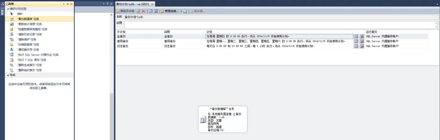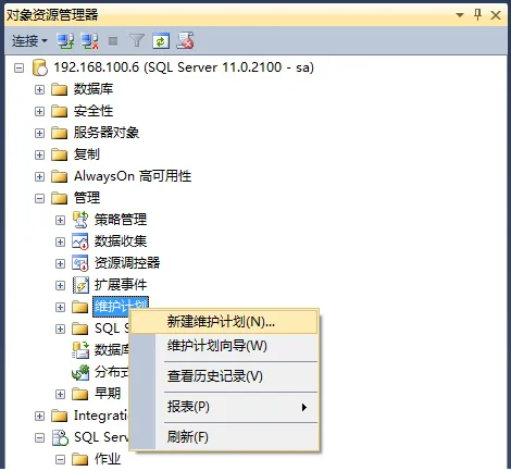 1. 创建维护计划:SSMS -> 管理 -> 维护计划 -> 新建维护计划