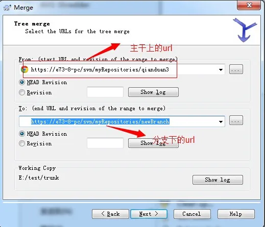 五:合并主干到分支。