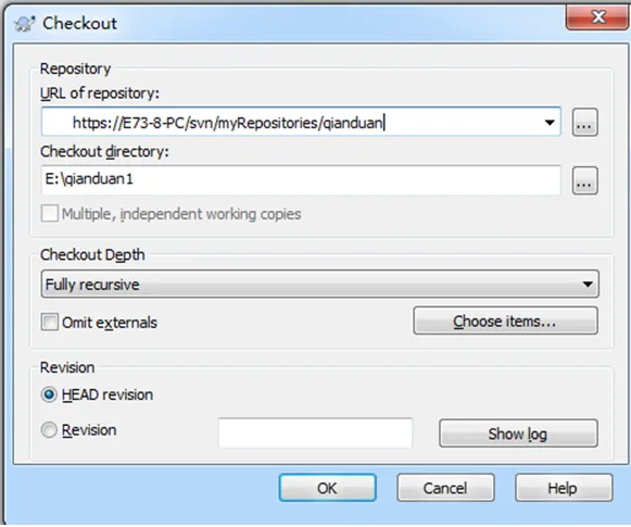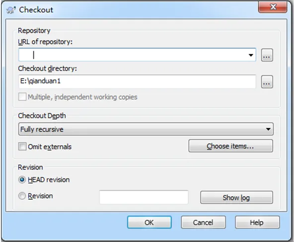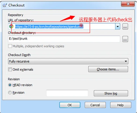 点击trunk --> 鼠标右键 --> 点击SVN Checkout --> 弹出一个对话框,如下图所示: