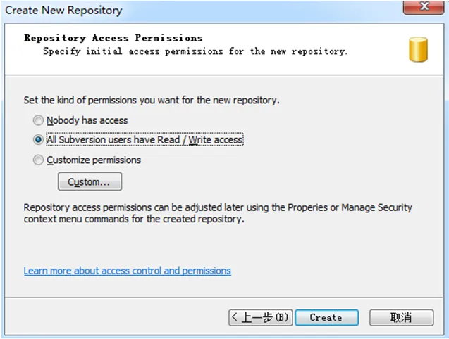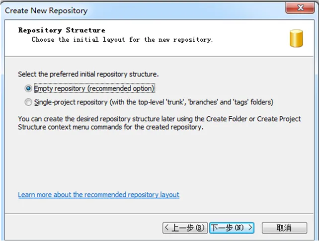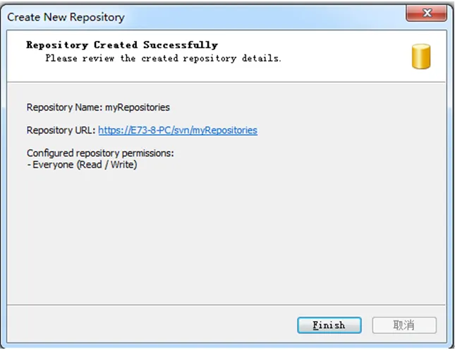 点击后,在弹开窗口的版本库url框中输入版本库的目录地址,然后点击确定,如下图