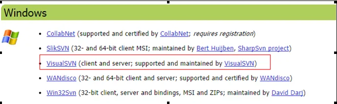 1.    首先来下载和搭建SVN服务器,下载地址如下: http://subversion.apache.org/packages.html,进入网址后,滚动到浏览器最底部看到如下截图: