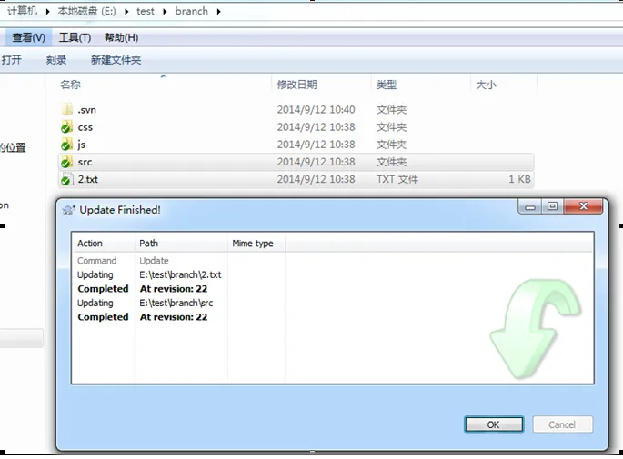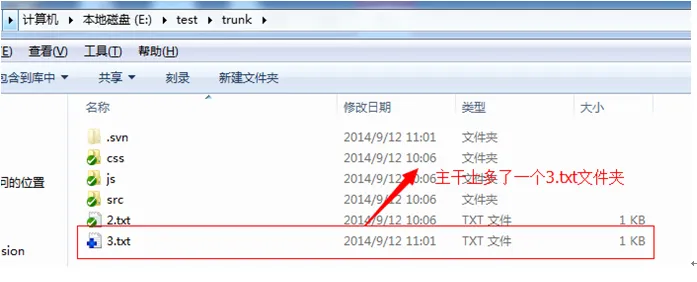 就可以看到主干trunk上多加了一个3.txt,就是从分支上合并过来的。