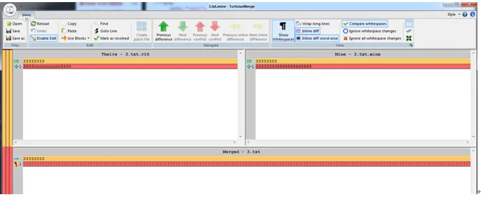 通过第一点我们知道,333333338888888888888这个内容是我修改后,未产生冲突之前的内容,3333cccccccccc3333这个代码是A用户提交的代码,从上面得知 A用户新增内容是ccccccc,而我新增的内容是8888888。