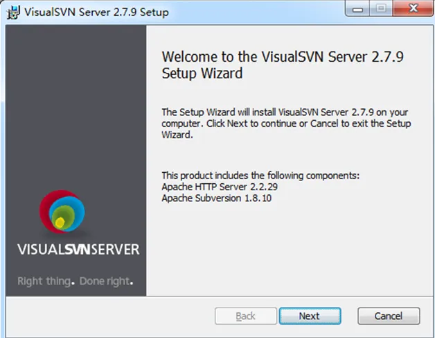 个人认为最好用VisualSVN server 服务端和 TortoiseSVN客户端搭配使用. 点开上面的VisualSVN连接,下载VisualSVN server,下载完成后双击安装,如下图: