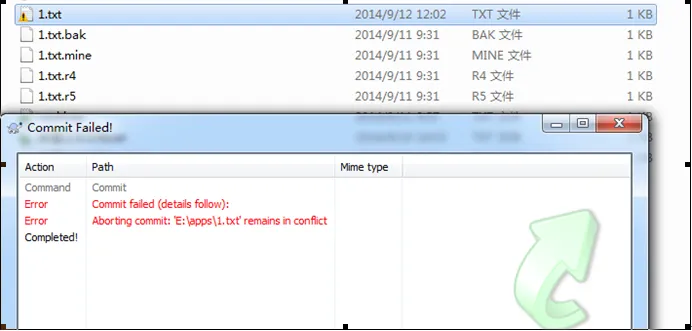 2. 1.txt.r4 是冲突前本地的版本文件