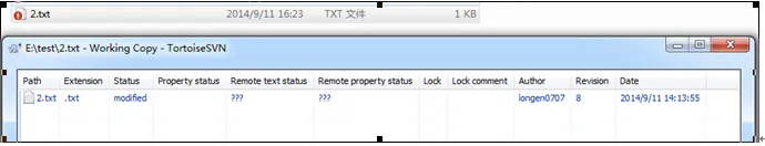 在你开始编辑一个文件之后,状态就变成了已修改,而图标重载已变成了红色感叹号。通过这种方式,你可以很容易地看出那些文件从你上次更新工作复本被修改过,且需要提交。