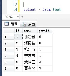 这是查询所有父节点的数据,如要查询某个子节点把where条件改为id=子节点ID 即可