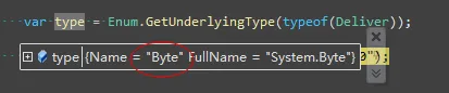 可能有人会问,这里的“uint8” 是怎么回事,其实这个就是隐藏到枚举类型后面的真实的基元类型,可以用GetUnderlyingType来获取。