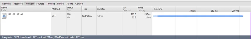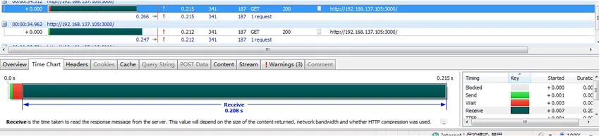 贴两张效果图。服务显示BODY RESPONSE完毕约203 MS。实际终端侧纯报文213MS,加上IE渲染40~50ms。OK,和目标一致,可以交差了。